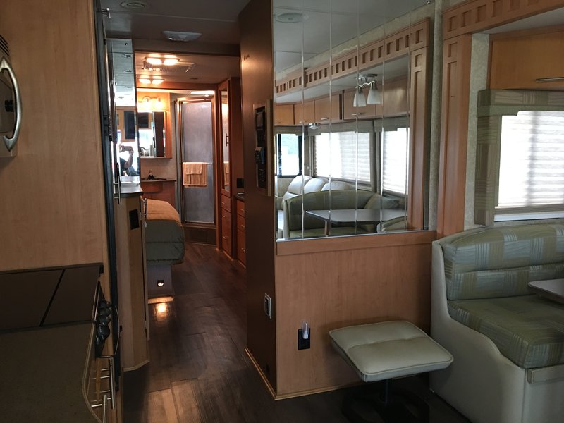 convection/micro over and more. Upgrades include carpeting replaced with laminate wood, leather seats and couch reupholstered and a push button electric flush toilet in the master bathroom. This motor home runs great. NADA low retail is $40k, avg retail $48k |