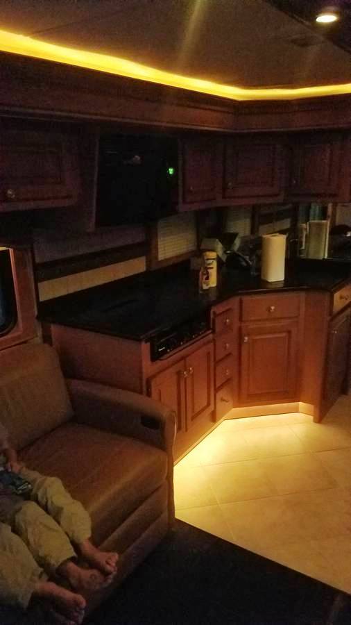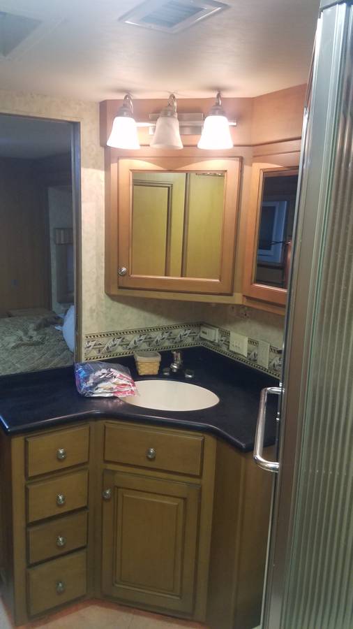 | 2005 Travel Supreme, 42ds04, 4 slide outs, 91k miles, 500 Cummins, Alison world transmission, 10k onan generator, 6000 miles on all brand new tires last fall, aqua hot heating system with Insta hot water, outdoor shower, outdoor t.v and pull out entertainment center, pull out tray in basement, large basement storage, fully heated basement, power reel for 50 amp power cord, remote power awnings, all windows have awnings, full tow package, back up camera, a.c., tilt, cruise, heated mirrors, mobile satellite system 12 disc CD player, xm stereo, nav, power sun visor driver and passenger, amazing surround sound stereo throughout the coach, power captain chairs, passenger chair swivels and is a recliner, 2 couches- one love seat with two recliners, one full couch with fold out comfy bed, tile throughout main cabin and bathrooms, hard wood in master bedroom, solid surface counter tops throughout the coach, convection oven, full size built in fridge with ice maker, bath and a half with porcelain toilet and sink in separate room with glass shower and skylight with sink and vanity, desk and makeup area in the master, king size bed, washer and dryer, plenty if closet and storage space throughout. There are 4 t.v.s total on the coach, accent lighting in tow kicks and in the ceiling throughout the coach. This has been an amazing coach to travel the state's in, we have garaged it since we bought it, this coach is in great condition and ready to hit the road. This coach has not been lived in. |