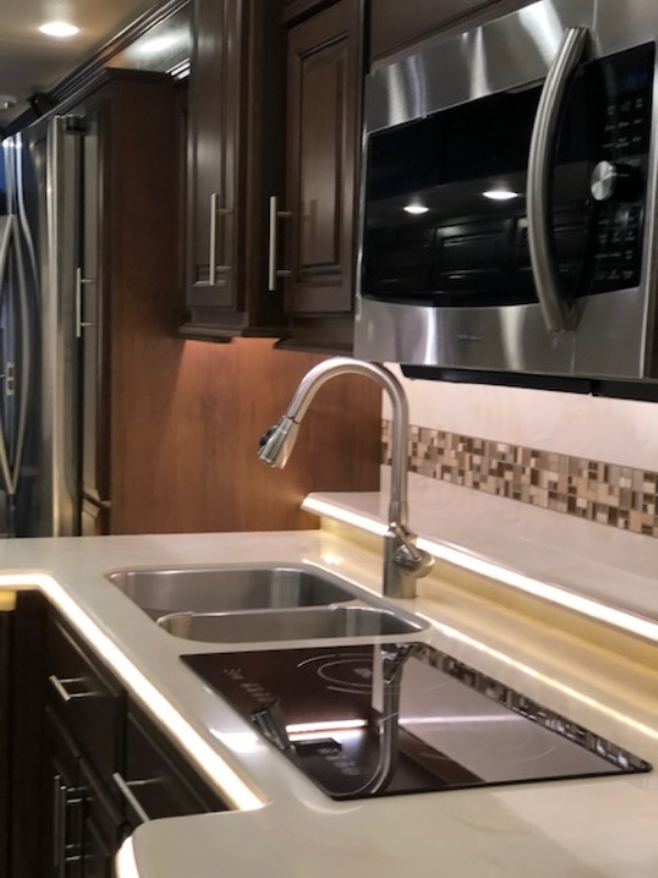 | Motorcoach is mint with 26000 miles, 4 tv's, beautiful inside and out, on demand, heated floors, cooktop, washer, dryer have never been used, 4 slides, 1-1/2 bath, safe, fireplace, full size fridge, dark maple cabinets with a light brown leather, porc floors, basement fridge and lower compartment slide. |