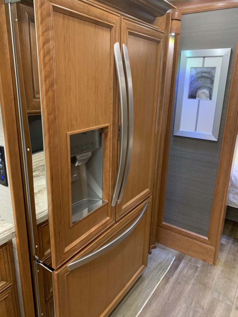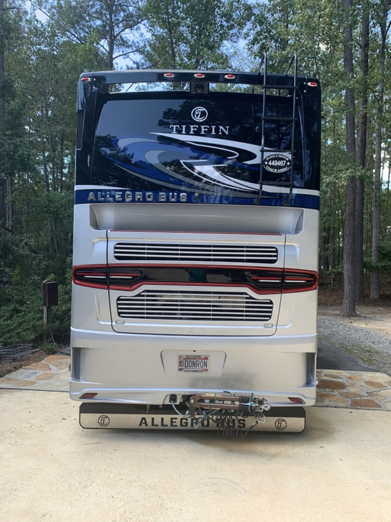 Tiffin has no option for our situation. The 40AP is our favorite floor plan in the industry. With a large mid bath and a full width closet, comfort and storage are in abundance. We added several unpublished options like the “605” rear cap, U shaped dinette, air comfort king bed and Vicinity tile floors (wood grain, non slip). After market additions include a Winegard Travler set up for DISH, a third bath medicine cabinet, Magne Shade windshield and door window covers and an electric bed lift. Dual awnings, dual power slide trays, Wolf cooktop, advanced monitor, 360 camera view, rear emergency exit and heated floors are some of the options. See the build sheet in photos. |