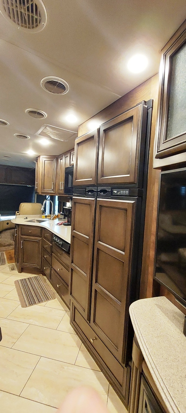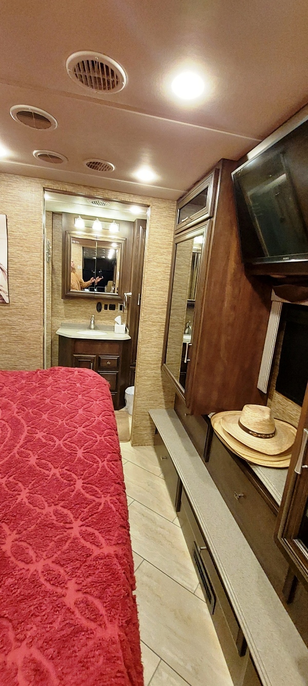 Newmar Canyon Star 3710 GAS This is a loaded unit. WE BOUGHT IT NEW, and now are getting into a diesel pusher. I have all of the records since new. I have added, 5 star tuner, Tyron flat tire protectors, Sumosprings all the way around, K&N air filter, custom cold air induction, Bilsteins all the way around. Outside it has the 1 piece fiberglass roof with the polar pac, wired for solar, twin heat pumps. Inside it has the Norcold 12cu. ft. gas electric Fridge, custom twin recliner seating ( got rid of factory couch) dining hutch with computer desk, WIFI extender, bidet in hall bath, added 4 towel rack in rear bath, Temperpedic King. We just completed adding 2 350 watts solar panels! Everything works, we got all of the bugs out so you can go on your way. Balance of warranty is assumable. It has just under 25k for mileage. IT NEEDS NOTHING! One last thing that should be known is it is under 5 years old, and people still can get a 20 year loan! |