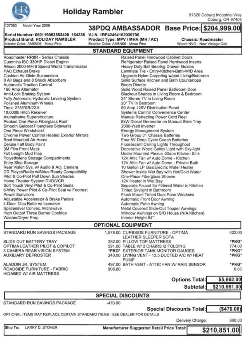 | 2006 Holiday Rambler Ambassador 38PDQ w/4 Slides 40FT $71,999 |