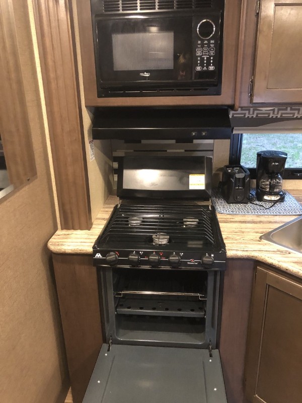 bed. Dinette converts to bed. 3 burner gas stove with oven. Microwave. Glass tile backsplash. Refrigerator/freezer can run on electric or gas. Oversized stainless steel sink with single handle faucet and pull down sprayer. Cockpit radio with CD player, back up monitor and mirror display. Heated/remote side view mirrors with side view cameras. Conversation mirrors. Map lights. Passenger side dashboard work station with 110-volt and 12-volt outlets. Front window privacy shades with heat reflective lining. Curved shower rod with micro antibacterial shower curtain. Pull-out kibble station. Foot flush porcelain toilet. Upgraded 44 inch Samsung television and Blu-Ray player in main salon. 32 inch Seiko televisions in bedroom and exterior. Onan RV QG 4000 gas generator with 240 hours. Brand new batteries. Newly resealed roof. New awning. Two slide outs- kitchen and master bedroom. 8,000 pound trailer hitch with Blue Ox vehicle towing system. Many extras: Charging cord with Surge Guard surge protector. Extra 50 food extension charging cord. Heavy duty extension cord with adapter from 30 amp to 120 volts. Corel dishware. Flatware set. Mini-broom and dustpan set. RV e-z slip tank flush hose and risers. One owner. Smoke-free. |