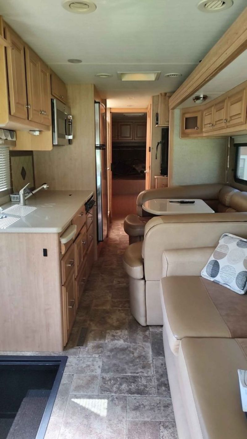 Diesel pusher on 2012 Freightliner chassis. 65,142 miles. 727 hours on Cummins Onan generator. 34 feet long, 26,000 pounds. Two slides both in good shape with toppers. New convection oven 2022. Four new house batteries May 2023. Two TVs and DVD player. Queen bed. Lots of storage. Good roof and tires. Slides were not open for pictures. Ready for use. Title in hand. VIN 4UZAAJDT2CCBW8087. Serious inquiries. Price negotiable. |