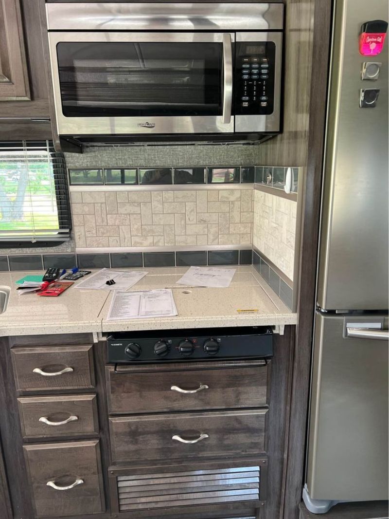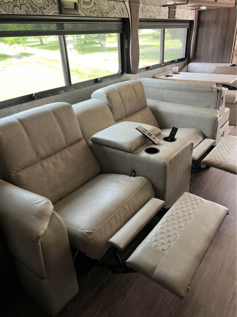 Offering this beautiful class A motorhome for sale due to illness of the driver. Only 35,000 miles. Non smoking and well cared for. In motion satellite and wired for DIRECTV. Main living room has a Samsung Smart tv. Bedroom has a Samsung Amazon Fire tv. Plus there is an outside tv and one above the drop down bed. The drop down bed has a new $700. mattress that is very comfortable. There is a king size bed with lots of storage in the bedroom. Large shower with built in seat. The half bath is also roomy with even more storage. In addition, the dining table makes into a double bed. You can easily sleep six comfortably. The refrigerator is a home refrigerator with French doors and a bottom freezer with an ice maker. Lots of storage underneath the coach which makes trips to the beach awesome! Again, only selling because of illness. It will be missed terribly, but is a plus for the new buyer! |