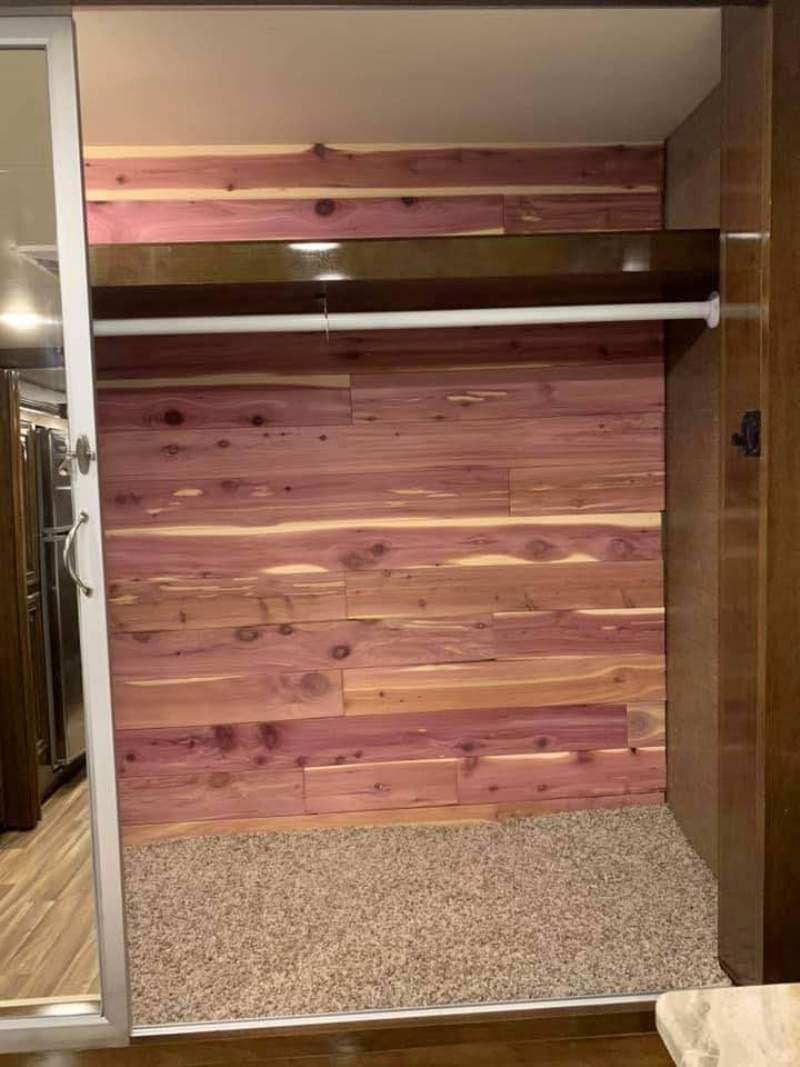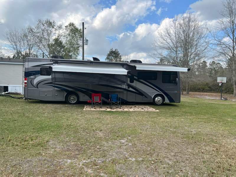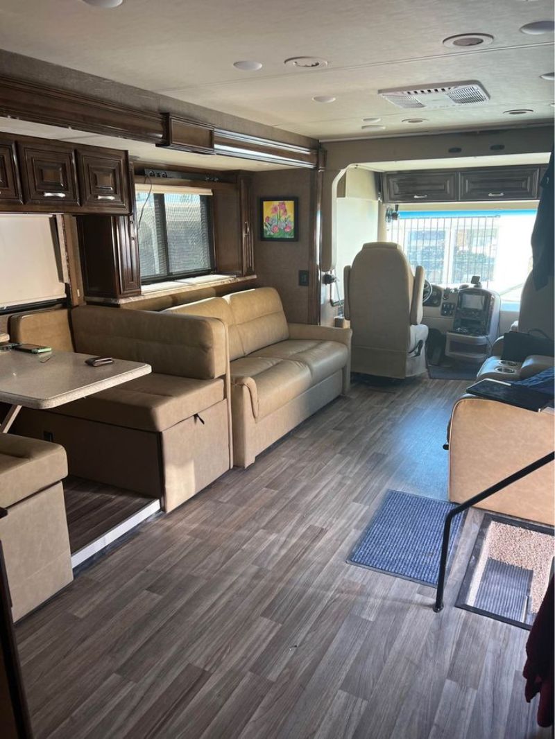 | 2019 Palazzo 37.4 well-maintained diesel pusher with lots of upgrades including Safe-T-Plus steering stabilizers, wider slide seals, lithium batteries, cedar-lined closet, Oxygenics shower head, new smart TV in living area, new radio/camera display with Apple CarPlay/Android Auto, wall-hugging recliners, new upholstery, residential fridge, washer and dryer, curtains over drop-down bunk, etc. Tires were replaced in March of this year. We love this rig, but need to reduce some debt so need to make changes. |