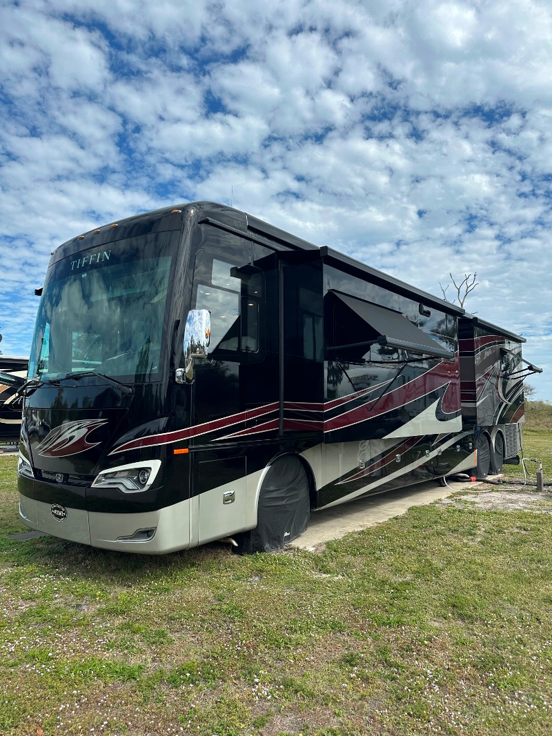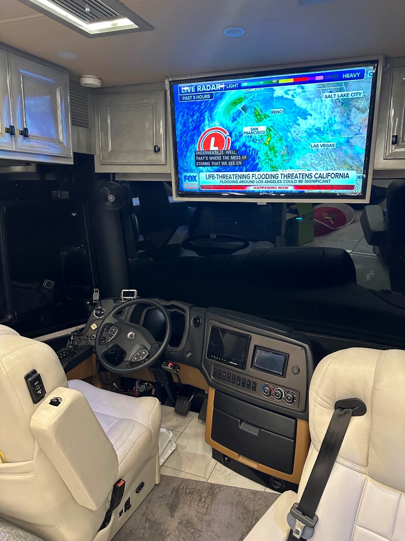 | My beautiful Class A motorhome. I bought a five year extended maintenance contract when new. It doesn’t expire for another year. Maintenance done annually. 19,600 miles. 4-4K TVs. 600 watts of solar panels. 16 USB plugs. Central vacuum. Heated floors. Washer Dryer. Dishwasher. All electric. No propane. 10,000 watt generator. Power lift king sized bed. |