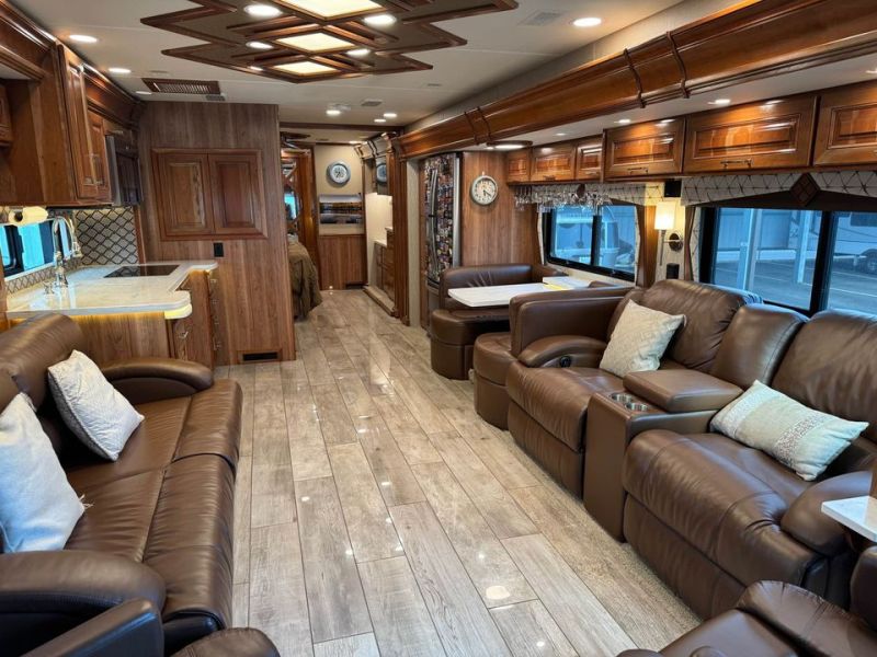 currently located North Plains, OR. Key Features: - Spartan K2 Raised Rail Chassis "Most quet ride". - Cummins L9 450 HP engine 1,250-lb. ft. torque, side radiator - Front Independent Air suspension - Front disk brakes w/ ABS - E-Z Steer electric, adjustable power steering assist - Auto Leveling - 15,000-lb. hitch with 7/4-pin plug - Onan 12,500-watt diesel generator - Aqua-Hot 450D diesel heater with in-floor heat throughout (Kept us comfortable thru 2 winters in Utah where the temperature drops < - 4 °F or -20 °C often) - 15,000 BTU AC x 3 - Basement heating - Central Vacuum - Hand laid high-gloss 8" x 48" porcelain tile floor - Italian ultra-leather furniture - All Electric Kitchen with Microwave/Oven, Dishwasher. - Samsung TV x 4 (32" Front O/H, 50" LR, 32" BR, 50" Outside) - Family Size Fridge - Stacked Washer and Drier - Full size cedar lined closet Upgrades: - Pepwave “Max Transit Duo” dual SIM wireless router + Mobile Mark 7-in-1 roof antenna - 2240 Ah LFP House Battery (vs. the original 390 Ah AGM) - 2.4 cf LG washer. Known issues (Covered by the 7 yr transferrable, extended warranty) : - Front Awning cannot be operated from VegaTouch. Remote works (Warranty item) - Front Awning LED comes and goes (Warranty item) - Black/gray water tank monitor reading unreliable (A common issue. Fixed once but came back. Warranty item). - Slight oil leakage from a D/S rear shock (Nothing serious, but eventually should be addressed. Warranty item) - Tire pressure sensors are all dead (Sensors need to be replaced. Warranty item). There is a remaining loan balance. Therefore, Sales transaction needs to be pre-arranged with buyer's bank accordingly. |