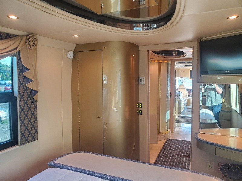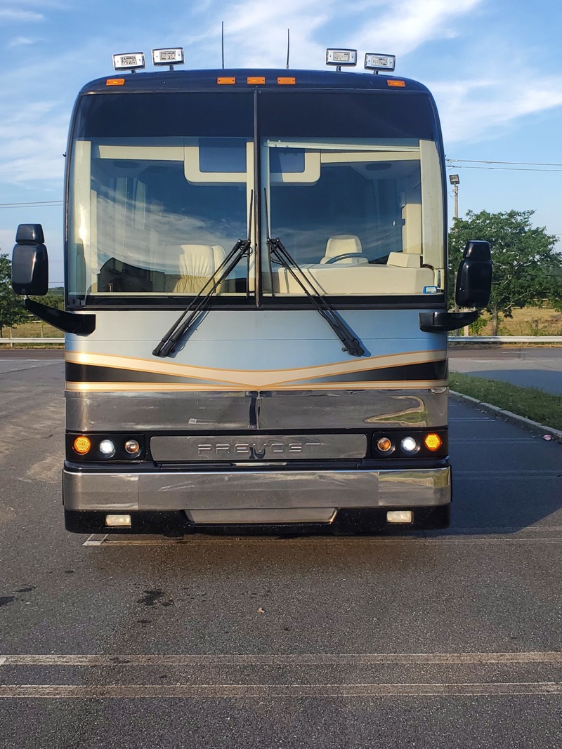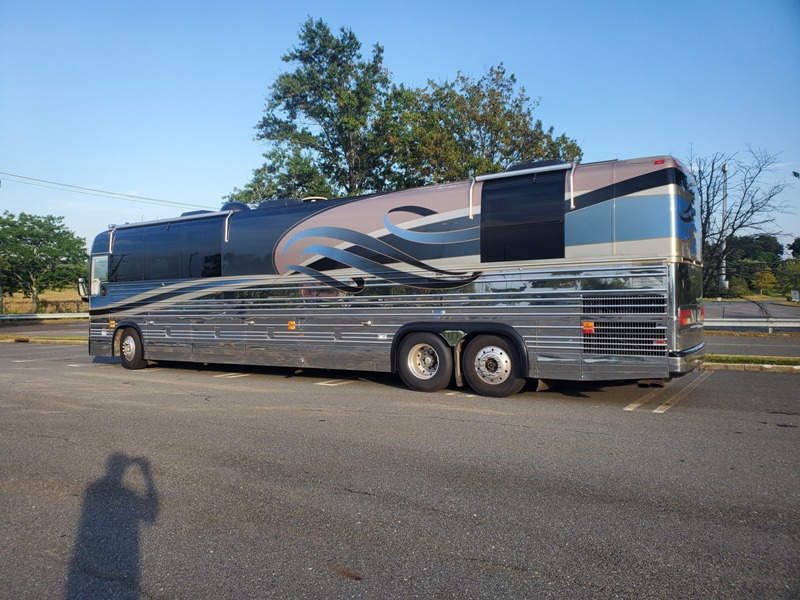 (less than 2,000 mi), spare tire, spare parts. 3 roof a/c units, 3 flatscreen TVs, full size fridge, dishwasher, microwave/convection, 2-burner stovetop, queen size bed. Why is this price so low when compared to other 2001 Prevost motorhomes? 1. The original converter, Thompson, is no longer in business, so there is no direct support. However, the systems are the same, or similar to, those of the major Prevost converters and repairs are available at most larger motorhome service centers. Prevost Service Centers are located throughout the US and Canada. 2. The clear coat along the roof and rear cap has minor peeling, You don't see it if you don't look for it. 3. Air-operated pocket doors (2) require attention. Worked well until recently. 4. R/S windshield visor motor is inoperative. Prevost does not supply this item, but they say it is commonly available from motorhome service shops. 5. We want to sell it before winter. Why are we selling? 1. My wife will not drive it - "too d*mn big". 2. I will be 75 years old soon, retired long-distance professional bus driver. I'm tired, as well as retired. I'm liking hotels more as I get older. 3. The 4 "defects" listed above, plus some minor cosmetics, are pretty easily addressed, but beyond my abilities at this point. |