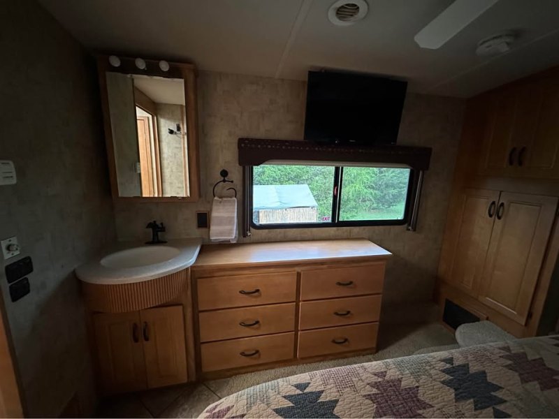2007 Itasca Ellipse 40' Itasca Ellipse Class A Motorhome 85,600 miles Inside amenities: 2 flat screen TVs, king sized memory foam bed, ceiling fan in master bedroom, 2 vanities, cedar lined wardrobe, washer/dryer combo, gas stovetop, microwave/ convection oven, fridge with ice maker, rain shower head, water filter, & more Outside features: Cummins ISL 400 HP diesel pusher (pre-DEF engine), Allison 3000MH 6-speed automatic transmission, Freightliner chassis with independent suspension, 8 KW Onan diesel generator, solar panels to charge batteries, hydraulic leveling system, exterior halogen lighting, power awnings, outdoor TV, & more. |