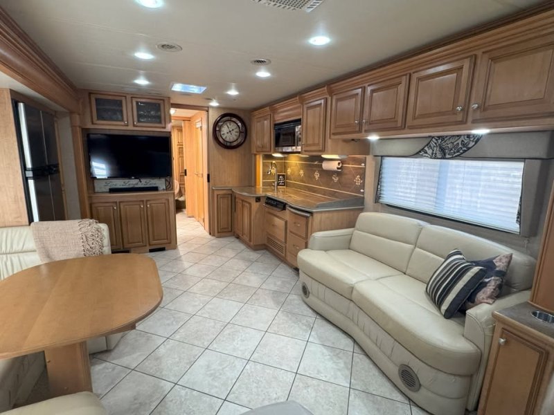 | This is a 2011 Damon Tuscany 3680. The Tuscany is the top-of-the-line flagship model for the Damon Corporation (now Thor Motorcoach). It sits on a Freightliner Raised Rail Chassis with passthrough storage, has an 8.3L, 360hp Cummins (pre-DEF), an Allison 3000-series 6-speed automatic transmission, and air-ride suspension. It has an Onan 8KW diesel generator and hydraulic auto leveling jacks with RV Snap Pads installed. The full body paint is in amazing condition. At 36' 6" in length, the Tuscany 3680 allows you to utilize many camping areas that are inaccessible to larger coaches. This coach is equipped with 4 slides, queen memory foam bed, central vac, Splendide washer/dryer combo in the master bedroom, convection microwave and 3-burner gas cooktop. All interior lights have been upgraded to LED. The sofa folds out into a queen-sized air mattress for additional sleep space. A 40,000 BTU gas furnace gives you the option to heat the coach with gas or you can use the two 13,500 BTU ducted A/C-heat units. The Tuscany 3680 also boasts an increased interior height of 7'2". Capacities are 100 gal diesel, 95 gal fresh water, 51 gal gray, 51 gal black, and 40 gal LP. Steering axle Michelin tires are date-coded 03/24, drive axle Michelin tires are date coded 09/22. New windshield installed 10/22, all new dash A/C components installed 07/24 (compressor, condenser, expansion valve, drier). Always stored under cover and connected to shore power. The full pass-through storage area is equipped with a MORryde slide tray that is accessible from both sides. Overall, the 2011 Damon Tuscany 3680 is a fantastic choice for anyone looking to hit the road in style. Its combination of luxury, performance, and reliability make it a top pick for travelers who demand the best. Don't miss out on the opportunity to own this incredible motorhome and start making memories that will last a lifetime. This coach is in amazing condition and ready for your next adventure. Selling to upgrade to a newer unit. |