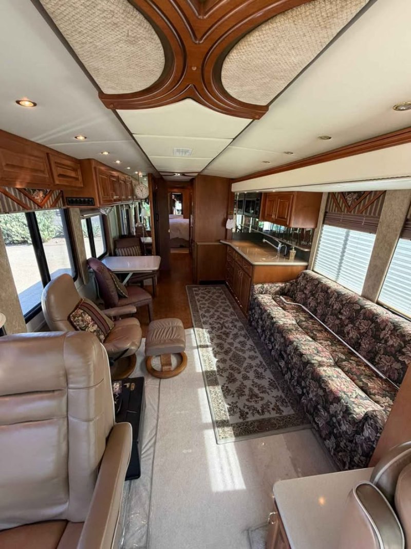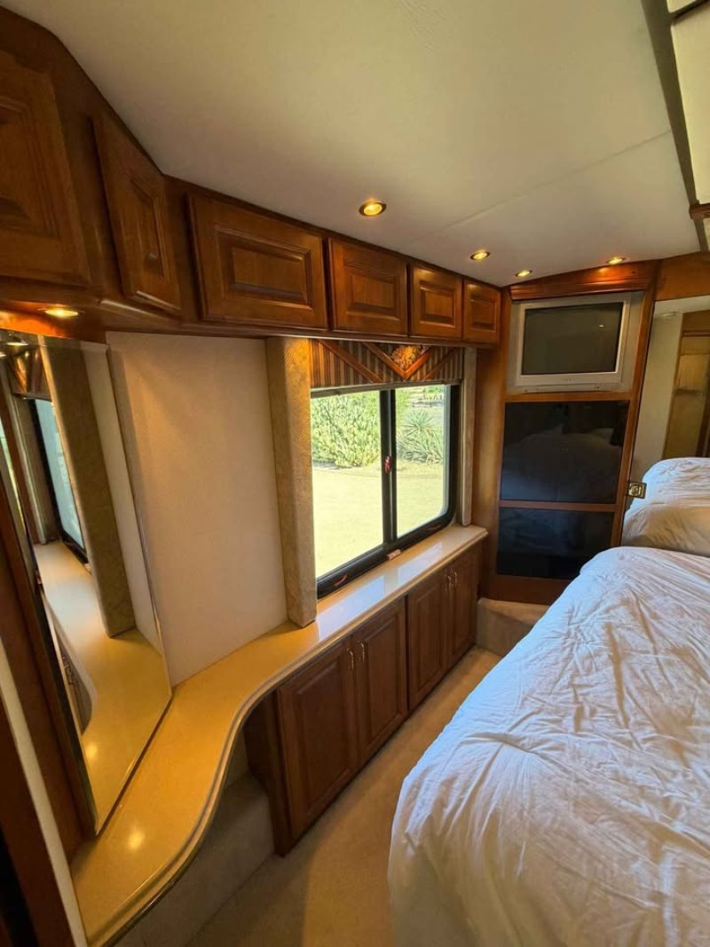 Controls.TV Satellite Systems on Roof. Stainless Steel Basement Compartment FLOORS. NO RUST EVER!!! This coach has been Garaged it's entire life. Immaculate Condition!!! Price.............................. $119,500.00 Scottsdale, Az. Updates Complete Chassis Lubrication 9-2025 Complete Engine & Generator Service 9-2025 New Fuel line to Generator 11-2025 Hurricane XL 45 Hydronic Heating System Serviced. 11-2025 ALL Engine, Transmission & Generator Filter New 9-2025 New Serpentine Engine Belt 9-2025 New 12v Starting Battery's 9-2025 New House Battery's 9-2025 New Generator Starting Battery 9-2025 New 315-80-22.5 Steer Tires |
