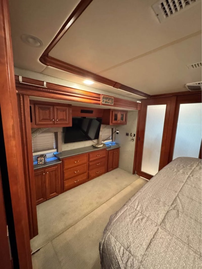 my new house build. Stored in Vero Beach. Asking 99,000 72,800 miles on Cummins 400ISL 8.9L diesel pusher, side radiator, No DEF, DPF delete, 1200 hrs on 8kw Cummins generator. 3 AC’s, 1&1/2 bath, King size bed, 4TVs, tire monitor, back up camera, engine brake, tag axel, outside swing out TV, great storage, 15k towing capacity, washer/dryer unit, 3 AC’s, Queen size sofa air bed (very comfortable), built in Vac system, under King bed storage, interior lights galore, Armor Roof lifetime coating (just serviced)& (transferable) ALL NEW IN LAST 8 MONTHS: Turbo, exhaust manifold gasket, VST for turbo, 6 new Toyo tires (other two are 2 years older on tag axle), new residential refrig, new micro/conv MW, Cummins LVL 3 cooling service on generator (new hoses, pump etc) , oil and filter on generator, oil &fuel filter change on Cummins, new hyd jacks motor and actuator, 5 new various sensors on Cummins, crank case filter change, serviced Techma toilet, rebuilt hot water heater, gun safe, new air filter, all new components on air brake system, new tail lights, new front headlights, new ac thermostat with WiFi, top of coach lights, front axle KONI shocks and airbags, waxed every 6 months. New topping cover on full wall slide. HaRVey (our name for coach) is in good condition and ready for the next trip. |
