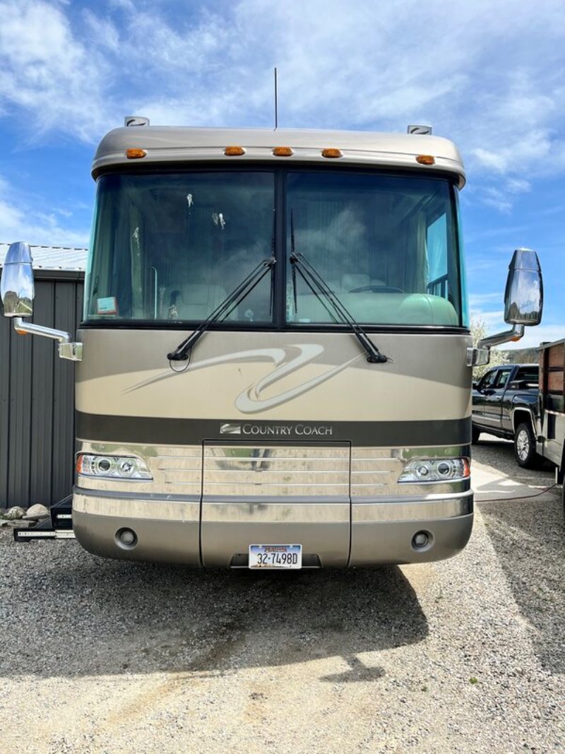 2004 Country Coach Magna , Chalet 42’ Powered by the Cat C-15 515hp/1650 torque engine (2452 hrs.) (recently serviced) 3 stage Jake brake, with the Allison 4000 6 speed transmission, Dynamax chassis with independent front suspension, all riding on air bag suspension, lifting tag axle, it has easily mastered the Rocky Mountain passes with confidence and has confidently handled strong cross winds with ease. HWH air leveling system works great. The 3 slide room design opens up the salon and bedroom. Has Aquahot hydronic (recently serviced) heating for interior space, wet bay warming, hot water at faucets, and engine preheating. The Onan 12,500 onboard generator (1490 hrs.) handles the 3 roof A/C (with heat) with ease. 50 amp shore power cord electric reel. The 4 8D gel batteries (11/24), with solar charging, xantrex freedom sw 3012 inverter. 110gal. Fuel, 99gal fresh water (whole house filtered), 63gal ea. black and gray tanks, 19.4 LP tank 10k hitch capacity, 7 way & 6 way plugs for trailer (brake controller included) or to use with the included Blue Ox toad pulling kit. Rear and side cameras with updated Pioneer blue tooth radio/monitor Girard awning with wind sensor, electric window awnings Convection microwave, 2 burner cook top, 4 door frig. (With updated sensors and cooling mechanism) polished solid surface tops throughout, Cherry wood cabinetry and interior trim Curved shower, separate throne room with additional vanity, brushed nickel finishes, Queen sleep number bed. 3 tvs (salon, bedroom, passenger side bay) and a projection tv with roll down screen. Interior and exterior lighting updated with LED. Day/night window shades. Tile in kitchen and bathroom areas, remote lock on entry door and bays, Engine radiator updated, wet kit for PTO done (drives hydraulic system) Tires: drive axle & tag Toyo 3/24, steer Michelin 11/24 + all wheel alignment This coach with its roomy interior and lots of storage is great for traveling and would be great for the snow birds going south for the winter Sold As Is, Where Is Please Contact Seller for more info or pictures if needed All offers will be considered |