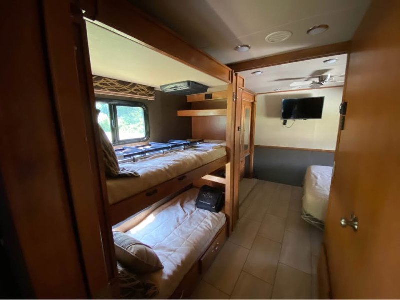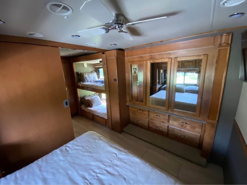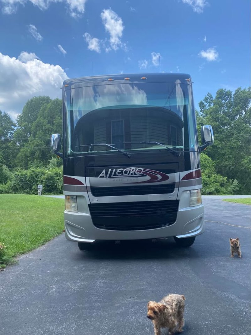 Allegro Open Road 35QBA Ford F10 chassis, Ford V10 Triton engine. Only 14,350mi, Garage kept, 4-Slide outs, Driver’s door, SumoSprings, Safe-T Plus Steering stabilizer, Heat pump/AC unit, bunk beds with DVD players, Queen sized master bed, Over the driver’s compartment bed, Convection oven/microwave, Central vacuum system, 4-TV’s, Direct TV/Dish satellite system, Sirius Radio, surround sound w/sub DVD system, new tires 2022, Roof resealed 2024, New coach battery 2025, Lots of storage, Cummins QG7000 Generator only 81/hrs, GVRW 24,000 lbs. |
